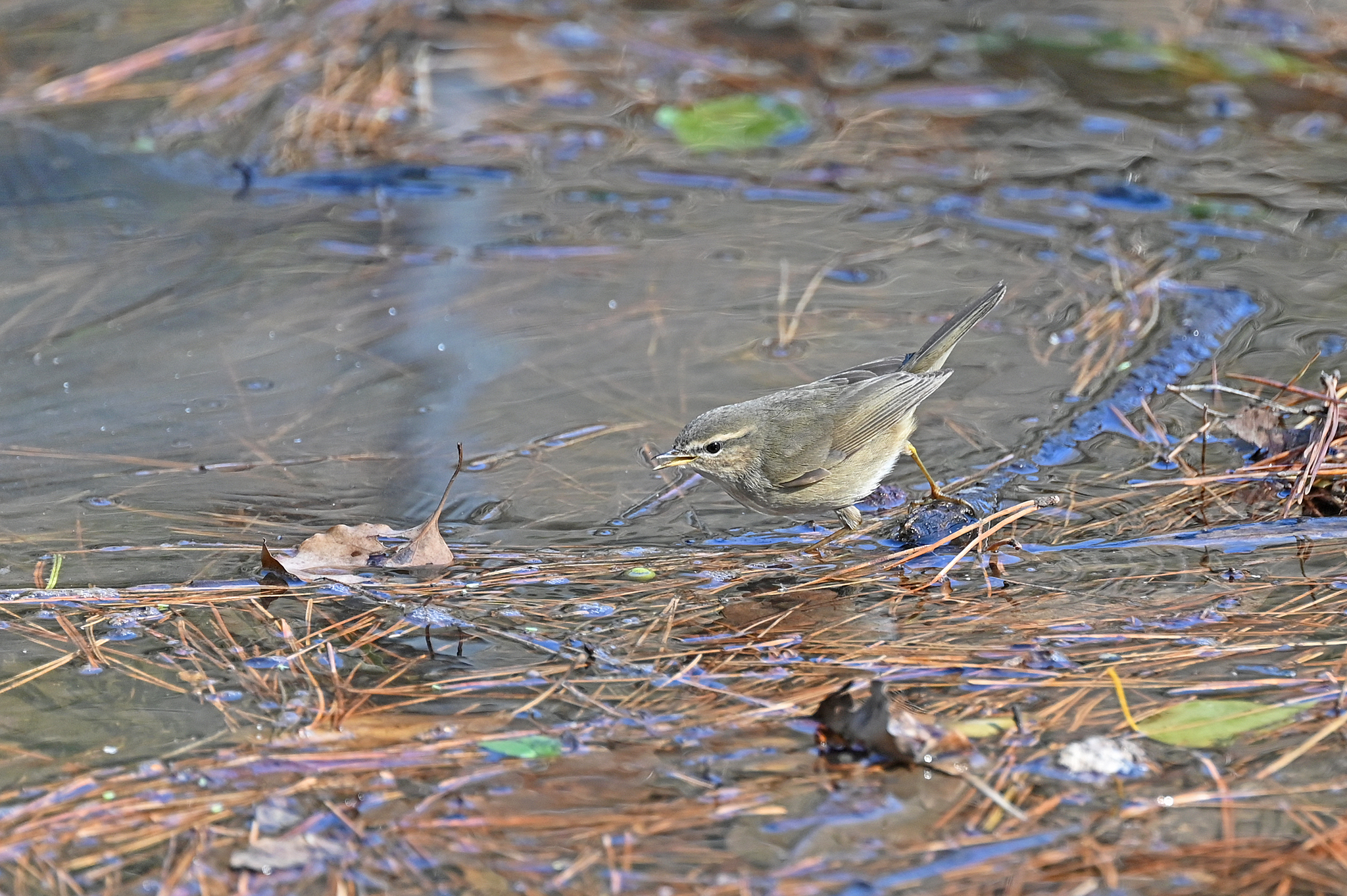 小さな体で忙しく動き回るムジセッカ(Dusky Warbler)でした。幸いなことに公園の木々の上ではなくて、落ち葉の堆積した地面や水路(水場)だったので助かりました。